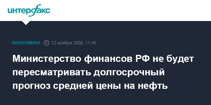 Министерство финансов РФ не будет пересматривать долгосрочный прогноз средней цены на нефть