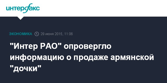 Москва. 29 июня. INTERFAX.RU - ПАО "Интер РАО" опровергает информацию об участии компании в переговорах и о подготовке сделки по продаже подконтрольных ей "Электрических сетей Армении" (ЭСА).