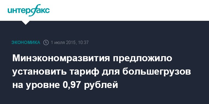 Москва. 1 июля. INTERFAX.RU – Минэкономразвития предложило установить тариф на проезд грузовиков массой свыше 12 тонн на уровне 0,97 рубля, говорится в сообщении министерства.