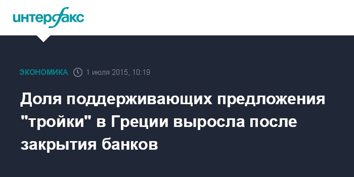 Доля поддерживающих предложения "тройки" в Греции выросла после закрытия банков