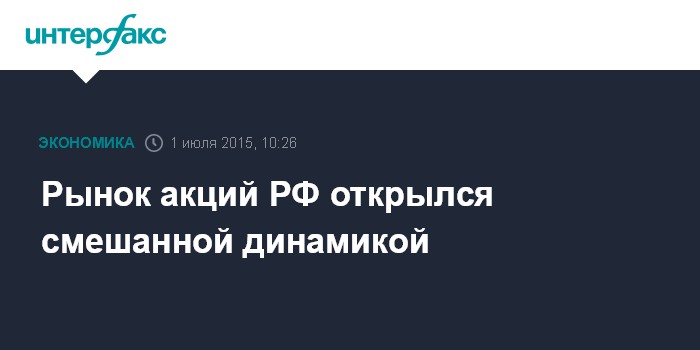Москва. 1 июля. INTERFAX.RU – Рынок акций РФ открылся в среду смешанной динамикой цен blue chips и индексов на фоне разнополярных внешних факторов, инвесторы следят за развитием ситуации вокруг Греции, которая накануне допустила технический дефолт, просрочив платежи по долгу Международному валютному фонду.