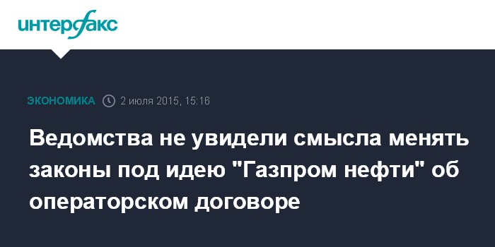 Ведомства не увидели смысла менять законы под идею "Газпром нефти" об операторском договоре