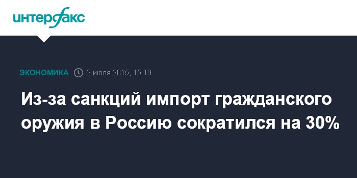 Из-за санкций импорт гражданского оружия в Россию сократился на 30%