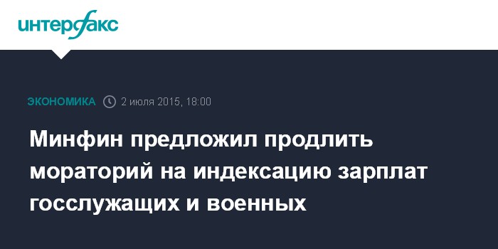 Москва. 2 июля. INTERFAX.RU – Минфин считает необходимым в условиях бюджетных ограничений продлить мораторий на индексацию зарплат госслужащих и военных.
