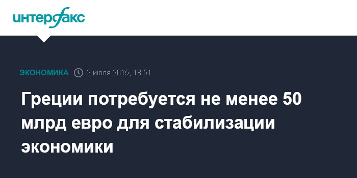 Греции потребуется не менее 50 млрд евро для стабилизации экономики