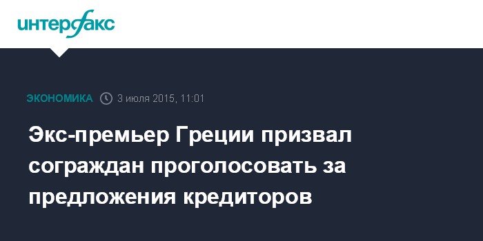 Экс-премьер Греции призвал сограждан проголосовать за предложения кредиторов