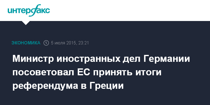 Москва. 5 июля. INTERFAX.RU - ЕС следует принять результаты референдума в Греции по предложению кредиторов, однако с последствиями этого решения должны разбираться в Афинах, заявил глава МИД ФРГ Франк-Вальтер Штайнмайер.