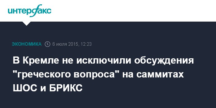 В Кремле не исключили обсуждения "греческого вопроса" на саммитах ШОС и БРИКС