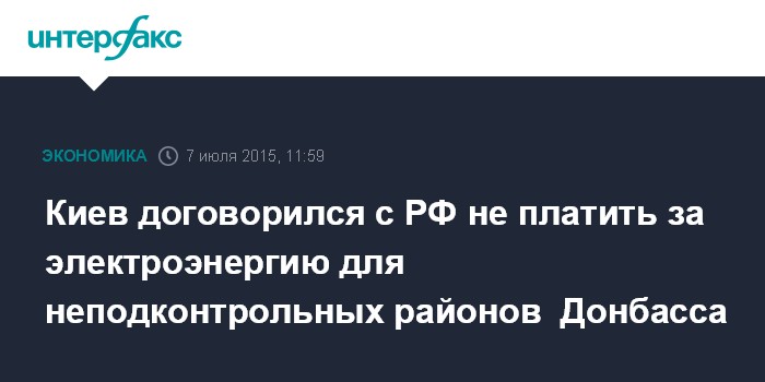 Киев договорился с РФ не платить за электроэнергию для неподконтрольных районов Донбасса