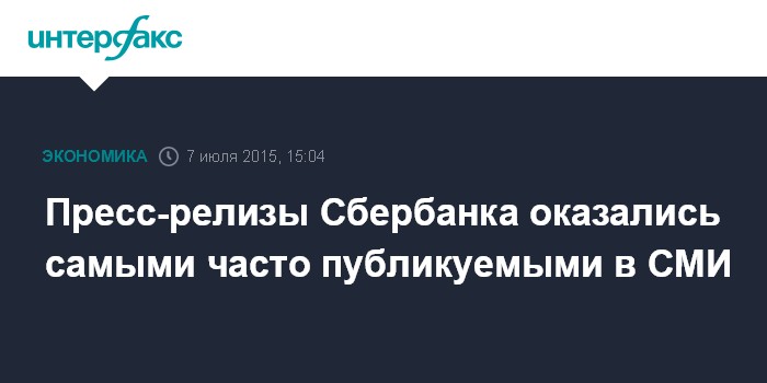 Пресс-релизы Сбербанка оказались самыми часто публикуемыми в СМИ