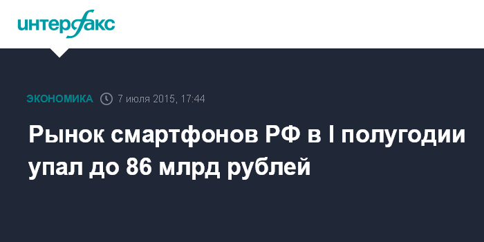 Москва. 7 июля. INTERFAX.RU - Продажи смартфонов в России в первом полугодии 2015 года впервые снизились в денежном выражении - на 2% по сравнению с январем-июнем прошлого года, до 86 млрд рублей, подсчитали аналитики ритейлера "Связной".