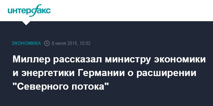 Москва. 8 июля. INTERFAX.RU – Председатель правления "Газпрома" Алексей Миллер во вторник в Берлине встретился с вице-канцлером, министром экономики и энергетики ФРГ Зигмаром Габриэлем, сообщил "Газпром".