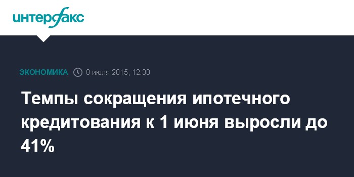 Темпы сокращения ипотечного кредитования к 1 июня выросли до 41%