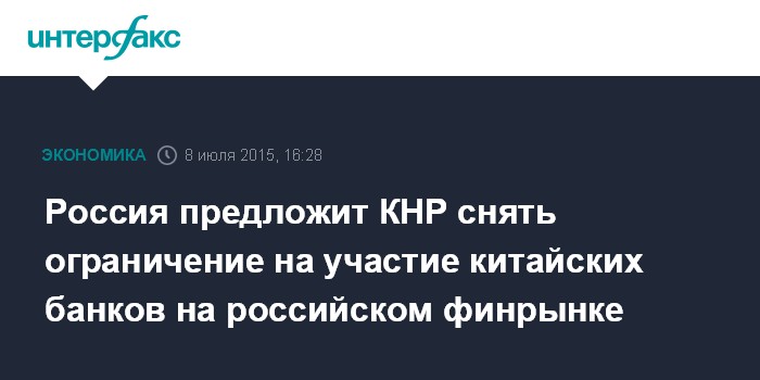 "Нам более интересно решение вопроса о возможности участия китайских банков, финансовых институтов на российском финансовом рынке. Сегодня есть определенные ограничения в этом сегменте на участие кредитных организаций Китая на российском финансовом рынке", - сказал он.