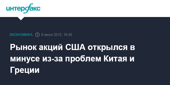 Рынок акций США открылся в минусе из-за проблем Китая и Греции