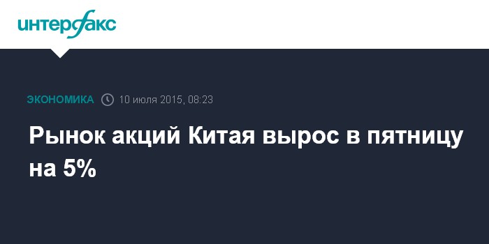 Москва. 10 июля. INTERFAX.RU - Китайские фондовые индексы продолжают ралли, индекс Shanghai Composite взлетел в пятницу на 5,2%, реагируя на принятые властями меры по поддержке фондового рынка, сообщает агентство Bloomberg.