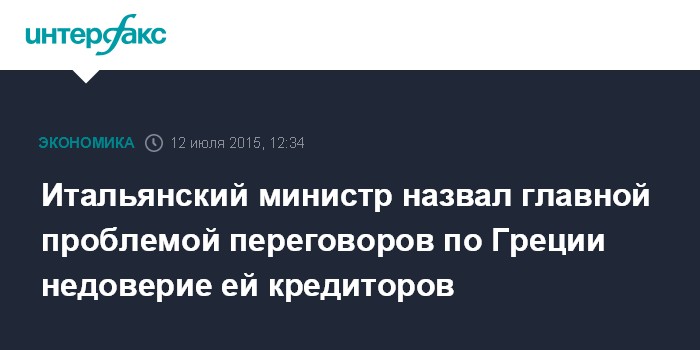 Москва. 12 июля. INTERFAX.RU - Основной проблемой переговоров Еврогуппы по греческому вопросу является недостаточное доверие международных кредиторов Афинам, заявил в воскресенье министр экономики и финансов Италии Пьер Карло Падоан.