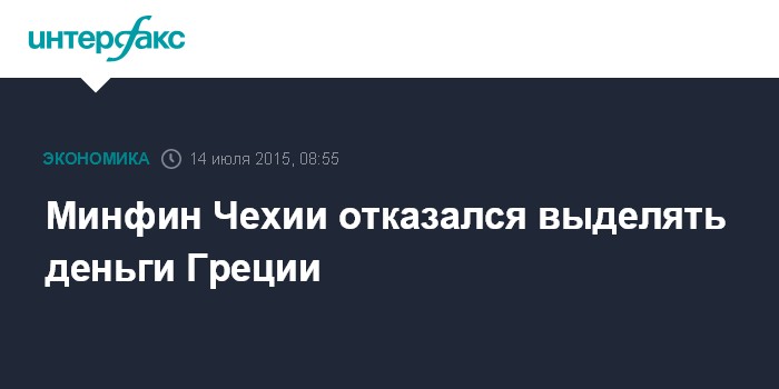 Москва. 14 июля. INTERFAX.RU - Чешская Республика отказывается гарантировать вероятный заем ЕС для Греции и не предоставит со своей стороны Греции никаких прямых займов, заявили на пресс-конференции премьер Чехии Богуслав Соботка и министр финансов страны Андрей Бабиш.