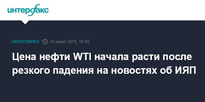 Цена нефти WTI начала расти после резкого падения на новостях об ИЯП