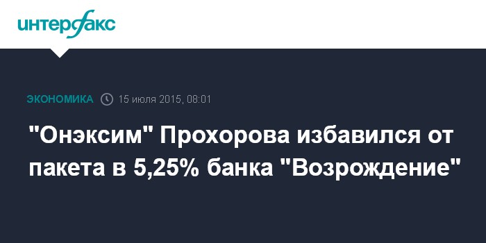 "Онэксим" Прохорова избавился от пакета в 5,25% банка "Возрождение"