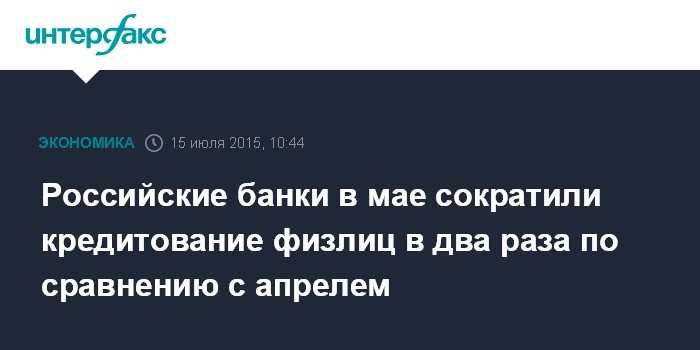 Российские банки в мае сократили кредитование физлиц в два раза по сравнению с апрелем