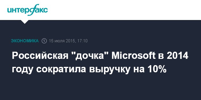 Москва. 15 июля. INTERFAX.RU - ООО "Майкрософт Рус", основное российское подразделение американского софтверного гиганта Microsoft, в 2014 году сократило выручку по РСБУ на 10,4%, до 8,9 млрд рублей, свидетельствуют данные базы "СПАРК-Интерфакс".