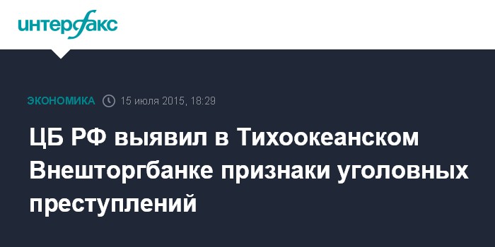 ЦБ РФ выявил в Тихоокеанском Внешторгбанке признаки уголовных преступлений