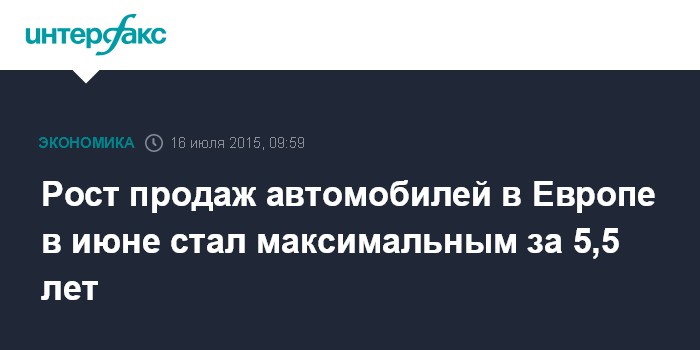 Москва. 16 июля. INTERFAX.RU – Рост продаж новых автомобилей в Европе в июне 2015 года продолжился 22-й месяц подряд и стал максимальным с декабря 2009 года, говорится в сообщении Европейской ассоциации производителей автомобилей (ACEA).