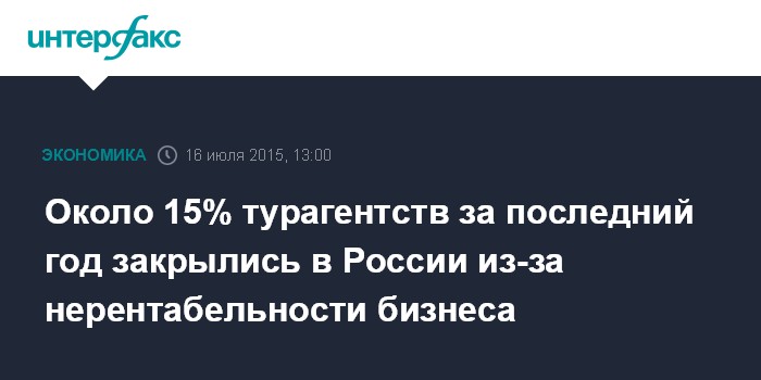 Он добавил, что главной причиной закрытия турагентств, которые продают продукт туроператоров потребителям, стала нерентабельность бизнеса.