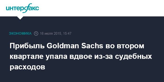 Москва. 16 июля. INTERFAX.RU – Американский банк Goldman Sachs сократил чистую прибыль во втором квартале почти в два раза из-за повышения судебных расходов.