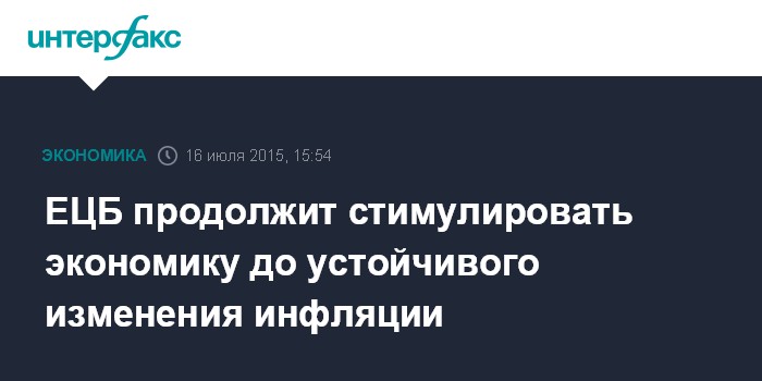 "Наша программа покупки активов продолжится до сентября 2016 года или до тех пор, пока мы не увидим стабильного улучшения показателя инфляции, который будет соответствовать нашей цели достигнуть уровня инфляции чуть ниже 2% в среднесрочной перспективе", - приводит его слова агентство Bloomberg.