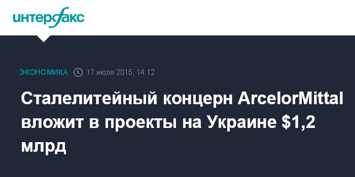 Москва. 17 июля. INTERFAX.RU – Сталелитейный концерн ArcelorMittal, владеющий на Украине меткомбинатом "ArcelorMittal Кривой Рог", в ближайшие годы планирует инвестировать в проекты на Украине $1,2 млрд, сообщил президент страны Петр Порошенко.