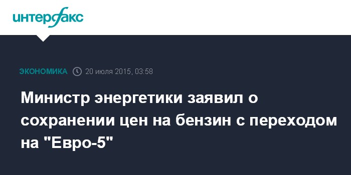 Москва. 20 июля. INTERFAX.RU - Переход России в 2016 году на бензин экологического класса "Евро-5" не должен отразиться на ценах, заявил министр энергетики РФ Александр Новак.