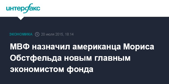 Москва. 20 июля. INTERFAX.RU - Новым главным экономистом и руководителем аналитического отдела Международного валютного фонда (МВФ) назначен Морис Обстфельд, который приступит к работе с 8 сентября, говорится в пресс-релизе МВФ.