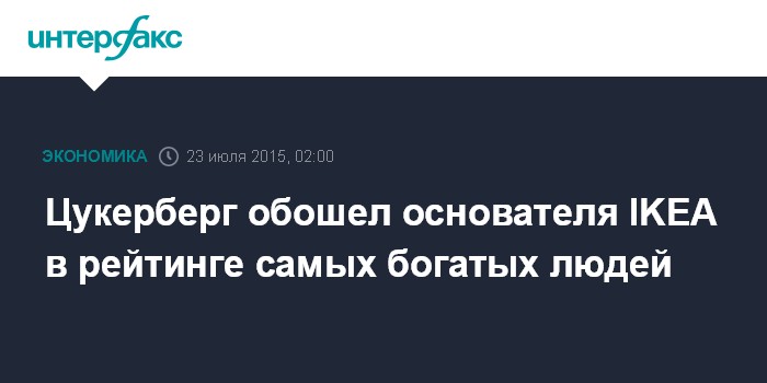 Цукерберг обошел основателя IKEA в рейтинге самых богатых людей