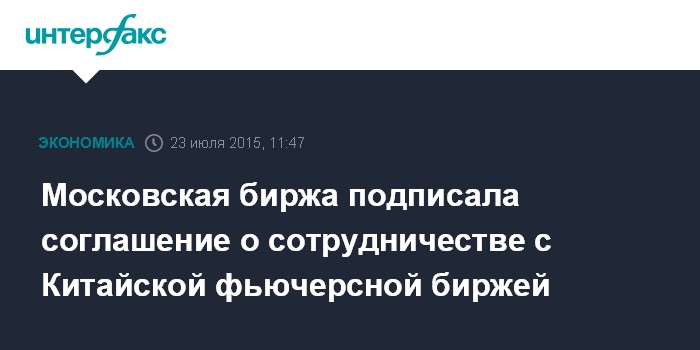 Московская биржа подписала соглашение о сотрудничестве с Китайской фьючерсной биржей