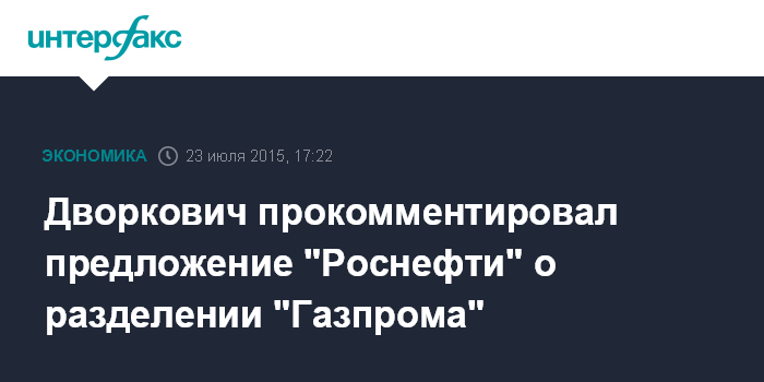 Дворкович прокомментировал предложение "Роснефти" о разделении "Газпрома"