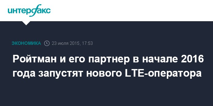 Москва. 23 июля. INTERFAX.RU – Новый LTE-оператор, связанный со структурами бизнесмена Евгения Ройтмана, появится в России в начале 2016 года, сообщил "Интерфаксу" источник на телекоммуникационном рынке.