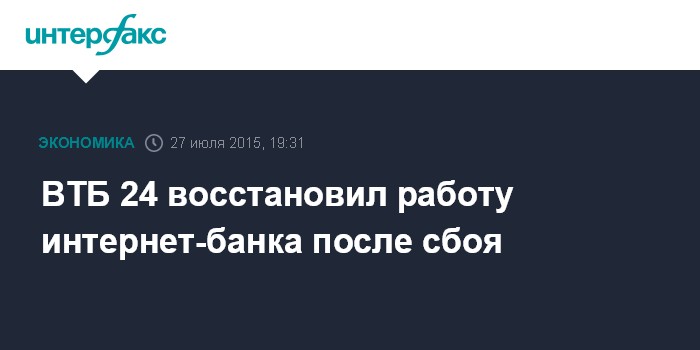 Москва. 27 июля. INTERFAX.RU - Банк ВТБ 24 восстановил штатную работу своего интернет-банка "ВТБ24-Онлайн", говорится в пресс-релизе кредитной организации.