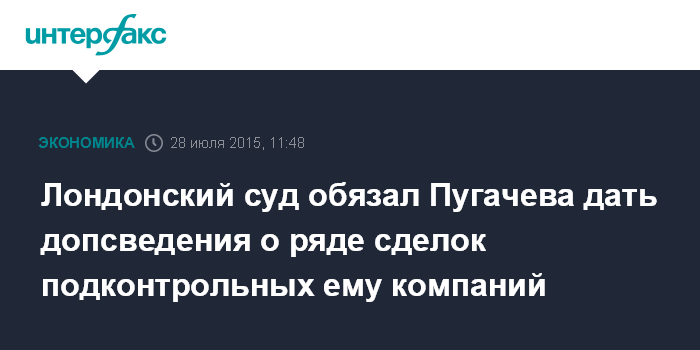 Москва. 28 июля. INTERFAX.RU - Высокий суд Англии потребовал от основателя Межпромбанка Сергея Пугачева предоставить дополнительные сведения о целом ряде сделок подконтрольных ему компаний, говорится в сообщении Агентства по страхованию вкладов (АСВ), ведущего судебные разбирательства с Пугачевым.