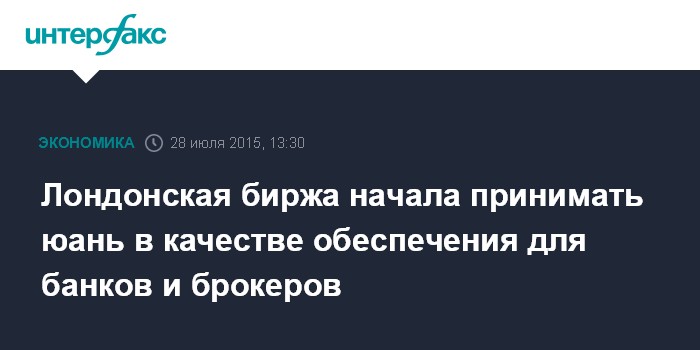 Москва. 28 июля. INTERFAX.RU – Клиринговый центр Лондонской биржи металлов (LME) - LME Clear - начинает принимать юань в качестве обеспечения для торгующих на ее платформе банков и брокеров, говорится в заявлении биржи.