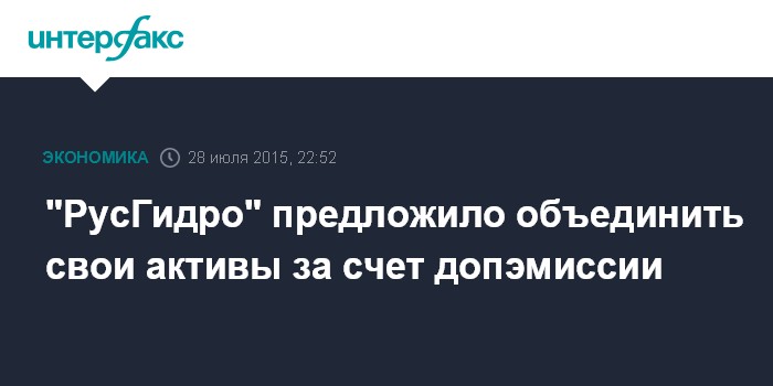 Москва. 28 июля. INTERFAX.RU - ПАО "РусГидро" предлагает за счет допэмиссии консолидировать свои дальневосточные активы, сообщил "Интерфаксу" источник в отрасли. По его словам, соответствующее предложение озвучил глава компании Евгений Дод в письме на имя вице-премьера Юрия Трутнева.
