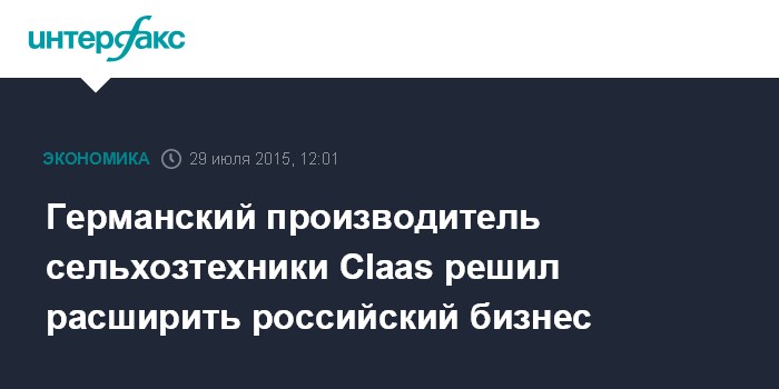 Москва. 29 июля. INTERFAX.RU – Германский производитель сельхозтехники Claas KGaA, работающий в Краснодарском крае с 2005 года, решил сделать ставку на расширение российского бизнеса, в то время как другие иностранные компании бегут из России на фоне рецессии и международных санкций.