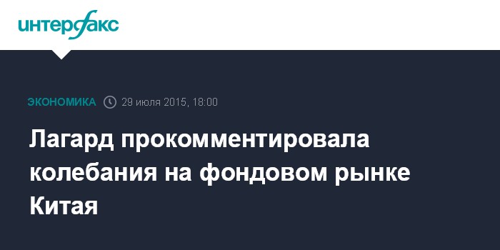Глава МВФ считает чрезмерной шумиху относительно резких колебаний китайского рынка акций. По ее словам, несмотря на недавний спад, объем фондового рынка КНР в настоящее время на 80% больше, чем в тот же период годом ранее.
