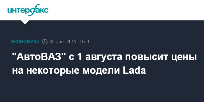 Москва. 30 июля. INTERFAX.RU – "АвтоВАЗ" с 1 августа поднимает цены на 4% некоторые модели Lada.