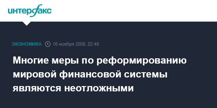 Многие меры по реформированию мировой финансовой системы являются неотложными