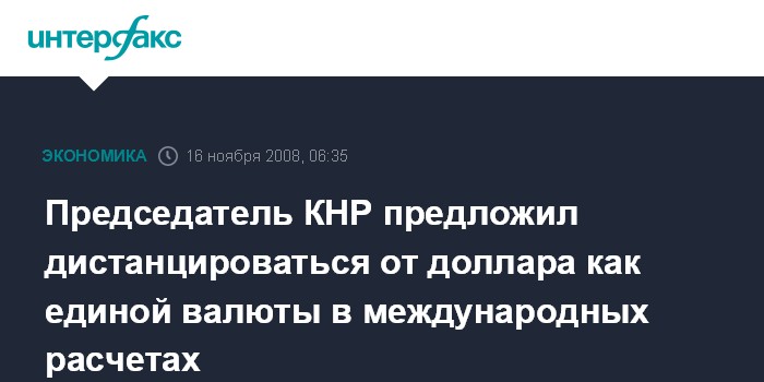 Пекин. 16 ноября. ИНТЕРФАКС-КИТАЙ - Китай считает необходимым увеличивать число иностранных валют в международных расчетах, заявил в субботу председатель КНР Ху Цзиньтао.