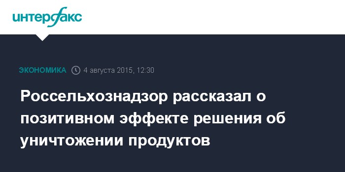 Россельхознадзор рассказал о позитивном эффекте решения об уничтожении продуктов