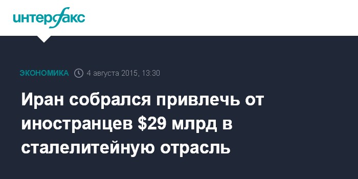 Иран собрался привлечь от иностранцев $29 млрд в сталелитейную отрасль