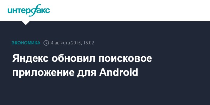Москва. 4 августа. INTERFAX.RU - "Яндекс", сражающийся с Google за российский рынок, обновил свое поисковое приложение для операционной системы Android - теперь это не только поиск, но и единая точка доступа к различным сервисам - "Пробки", "Карты", "Погода", "Новости" и "Телепрограмма".